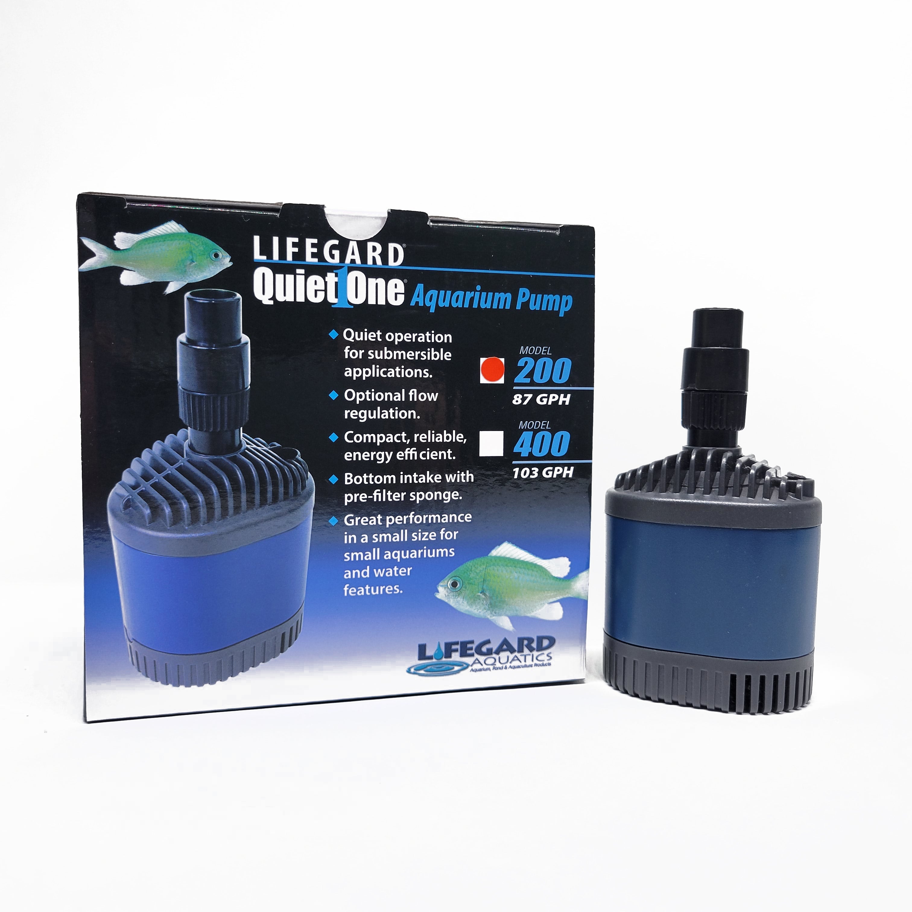 Quiet One 200 Submersible Pump 87 GPH with bottom suction, top discharge and flow control valve. Ideal for small aquariums, fountains and water features.