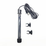 Submersible Shatterproof Quartz Heater safe for Freshwater and Saltwater tanks. Pre Calibrated and set to 78° with no temperature adjustment needed after installation. LED Power Indicator Light showing operation. 120V 60 Hz energy efficient operation. Quartz Glass tube, 6’ cord and suction cup mounting brackets.