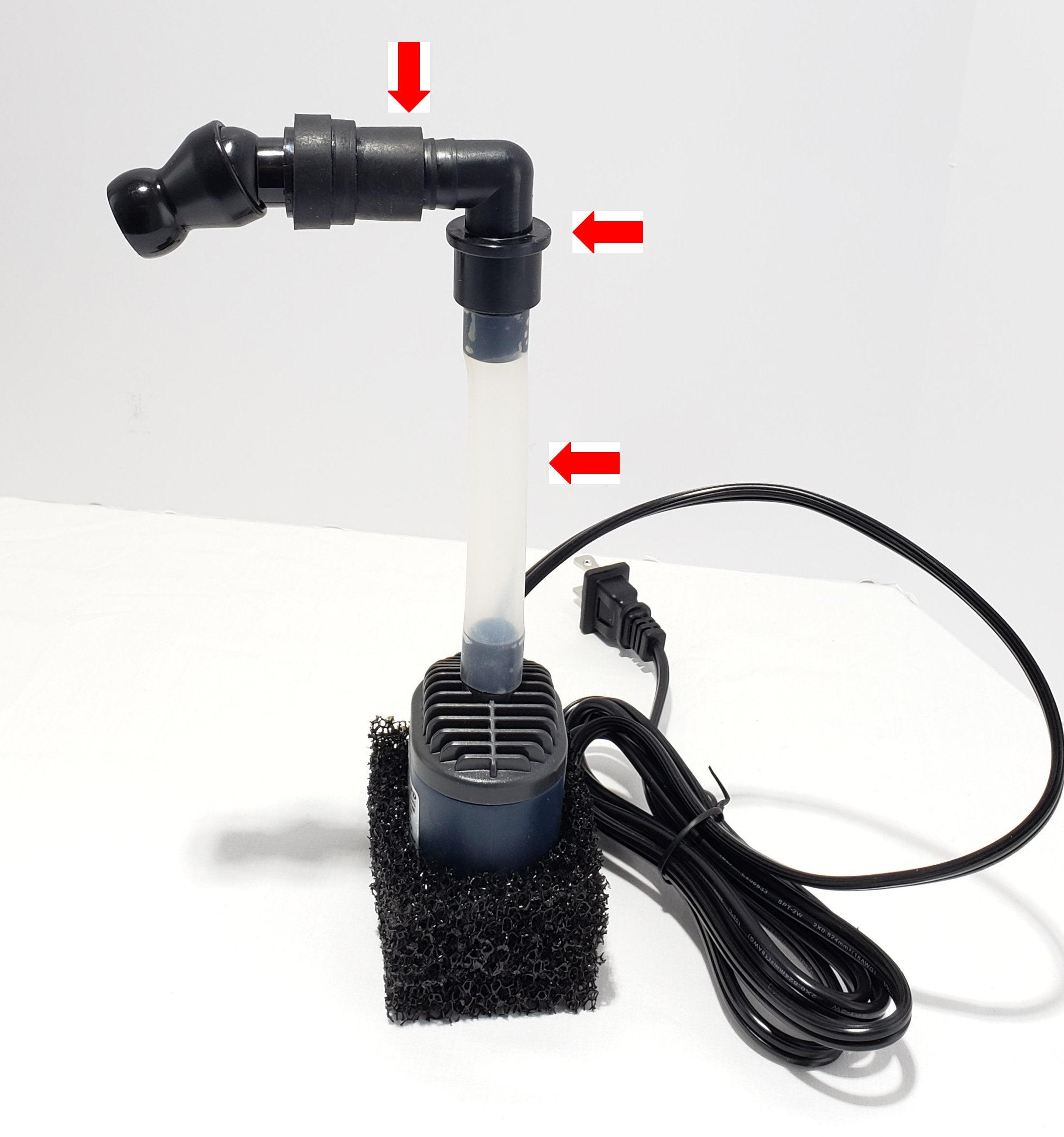 Flexible Tube Elbow Assembly for 7 gallon Full View Aquarium with Built in Back Filter. The set includes all the items marked with the arrow.