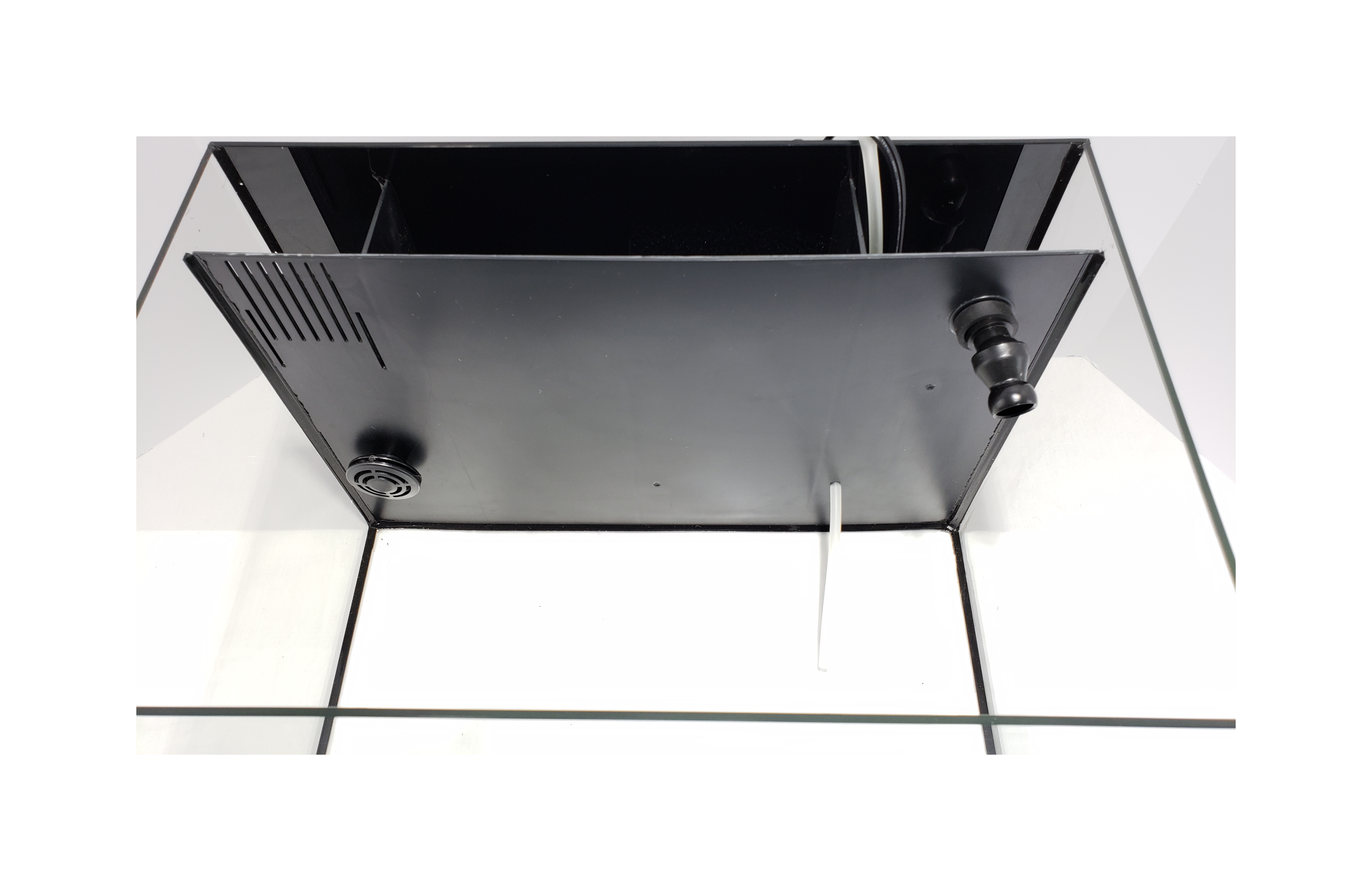 This is not your traditional flat front square or cube tank. This is a well-designed Full View Aquarium. The angled front allows the user to have a larger viewing area inside the tank when placed at the same level with a flat front tank. No more bending down to enjoy the life inside the aquarium. The Full View aquarium offers the Maximum viewing area in its class. This modern designed aquarium comes complete with all the necessary mechanical filtration, carbon filtration, Full Spectrum LED lighting, Quiet One 400 Pump, Integrated CO2 / O2 dispensing capability, Water Level control with Waterfall, Bio Media, Aquarium Pad and flex water flow required for a healthy ecosystem and Tempered Glass Lid & Clips.