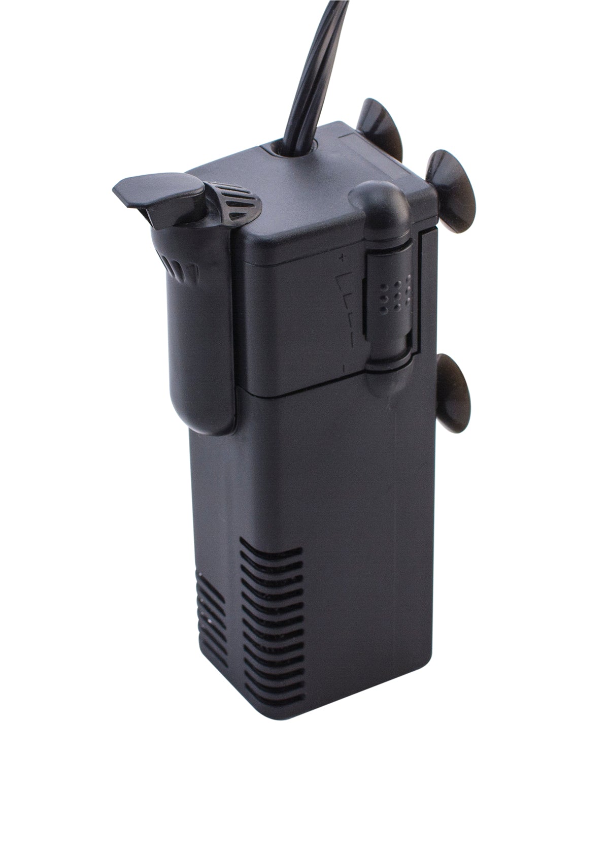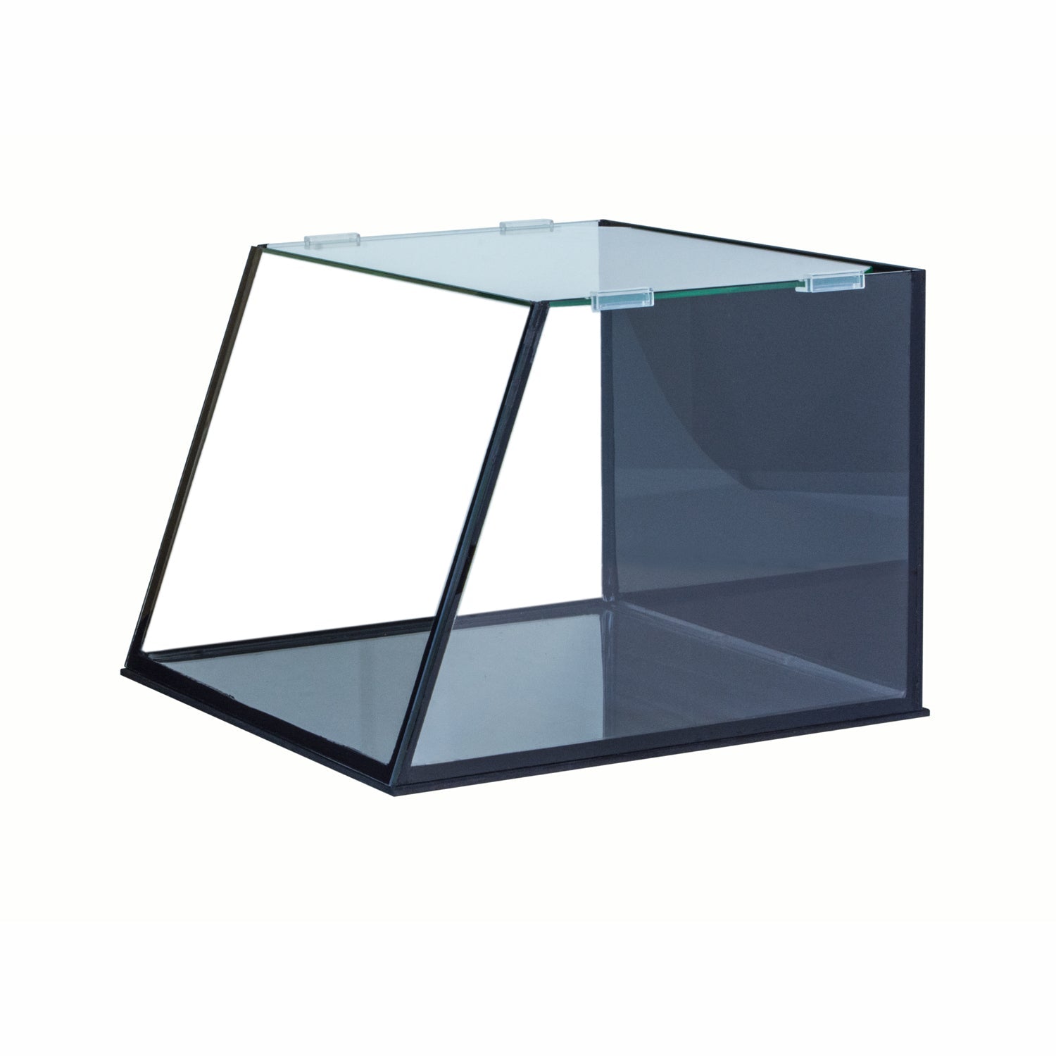 This is not your traditional flat front square or cube tank. This is a well-designed Full View Aquarium. The angled front allows the user to have a larger viewing area inside the tank when placed at the same level with a flat front tank. No more bending down to enjoy the life inside the aquarium. The Full View aquarium offers the Maximum viewing area in its class. This modern designed aquarium comes complete with all the necessary mechanical filtration, carbon filtration, Full Spectrum LED lighting, Quiet One 400 Pump, Water Level control with Waterfall, Aquarium Pad and flex water flow required for a healthy ecosystem and Tempered Glass Lid & Clips
