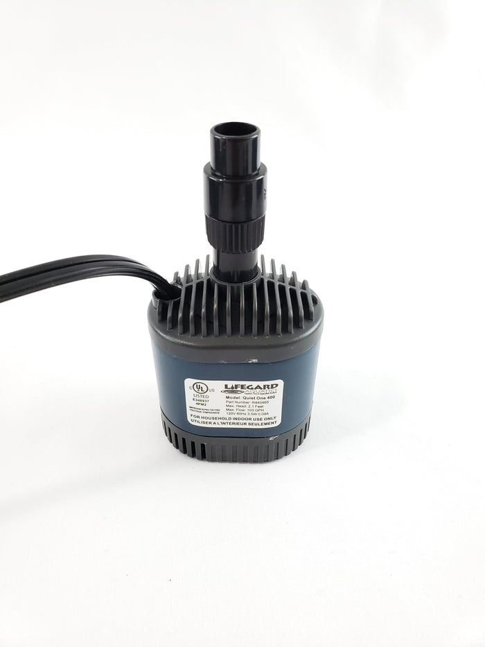 Quiet One 400 Submersible Pump 103 GPH with bottom suction, top discharge and flow control valve. Ideal for small aquariums, fountains and water features.